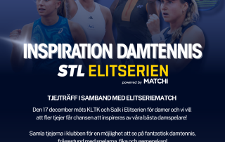Vi hoppas många klubbar ser möjligheten att samla sina tjejer/damer till en inspirationsdag då KLTK - SALK drabbar samman i en spännande Elitseriematch. Förutom möjlighet att se högklassig damtennis kommer det också erbjudas möjlighet till en frågestund med spelarna. 17 december Kungl. Tennishallen Kl 16.00, frågestund med spelarna Kl 17.00, Matchstart