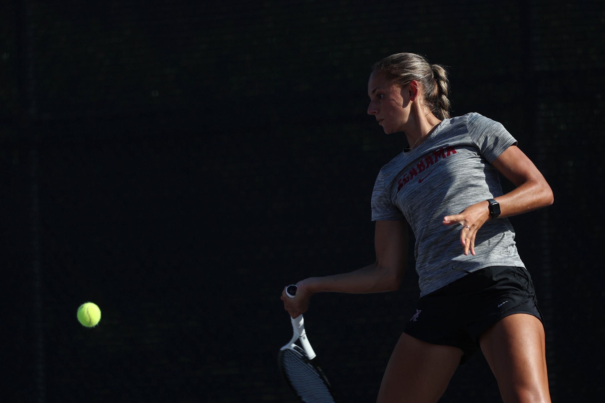 Några svenska kompisar har hon inte i collegelaget ”Bama” borta i USA. Närmast är svenskbekantingen, ukrainskan Mary Sidelnyk (Djursholms TK). Däremot spelar flera svenskor i samma conference.