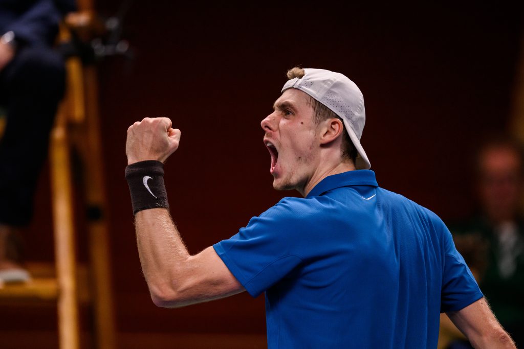 Denis Shapovalov var i gungning men redde ut det till slut. Foto: Simon Hastegård / Bildbyrån