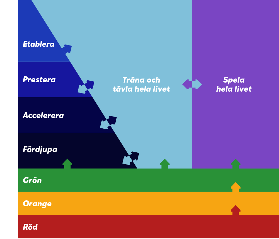 Utöver dessa fem områden kompletteras varje stadie med tre viktiga delar: spelidentitet och fokusområden, program och planering samt förälderns roll. Dessa delar bidrar till att skapa helhet, riktning och samsyn i spelarens utveckling.