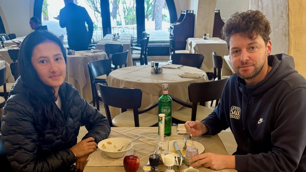 När vi når Lea sitter hon och Andre och äter frukost nära havet.
