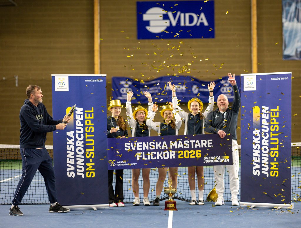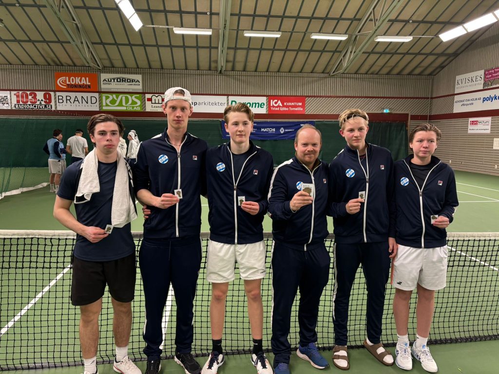 Guldet till Ullevi TK, silvret till MIK Tennis och bronset till GLTK. Övriga placeringar; 4) Ystads TK, 5) KLTK, 6), Helsingborgs TK, 7) Stora Wäsby TK och 8) Fair Play TK.