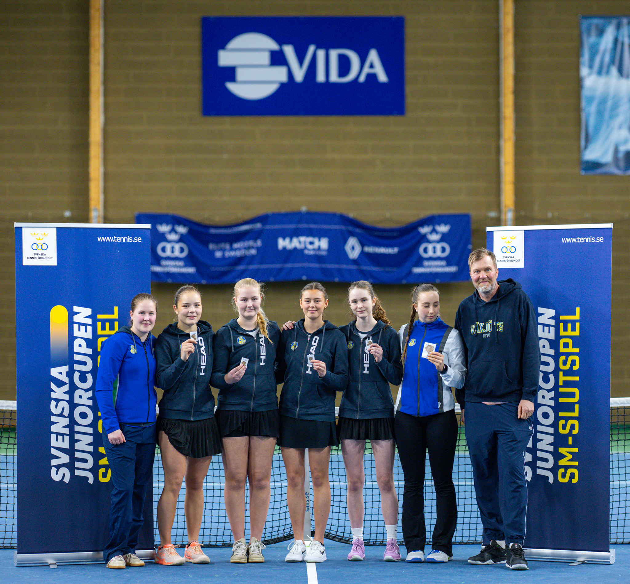 Guldet till Ullevi TK, silvret till MIK Tennis och bronset till GLTK. Övriga placeringar; 4) Ystads TK, 5) KLTK, 6), Helsingborgs TK, 7) Stora Wäsby TK och 8) Fair Play TK.