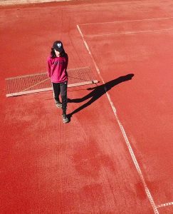 Getinge TK har alltid varit mån om att klubbens juniorer aktivt ska ta del i vårarbetet och skötseln av anläggningen. Här är det Oliver som konstaterar att bana 2 är klar för spel.