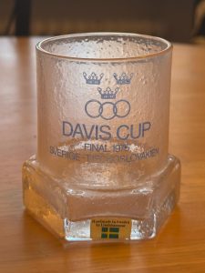 • Landskampen sänds utan kostnad via Davis Cups streamingplattformFotnot: I samband med matchen 1975 var det kanske första gången som Svenska Tennisförbundet hade ‘merchandise’ – samordnat av Anders Wennberg som vittnar om en mindre framgångsrik försäljning av glasen (se bild ovan).